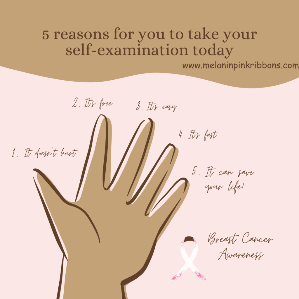 Sharing five reasons way you should perform your Breast Self Exam on a regular basis! Remember if you have a menstrual cycle 3-5 days after your cycle is best. If you have gone through menopause pick 1 day and do it the same day each month.