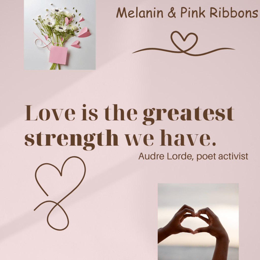 Welcome to Melanin & Pink Ribbons: A Blog for Black Women Fighting and Surviving Breast Cancer. It was born out of my personal journey as a patient not seeing very many images of women who looked like me fighting this disease. So, when I became a survivor, I did something about it. This is a space to learn and become empowered with information so we as a community can thrive into survivorship.