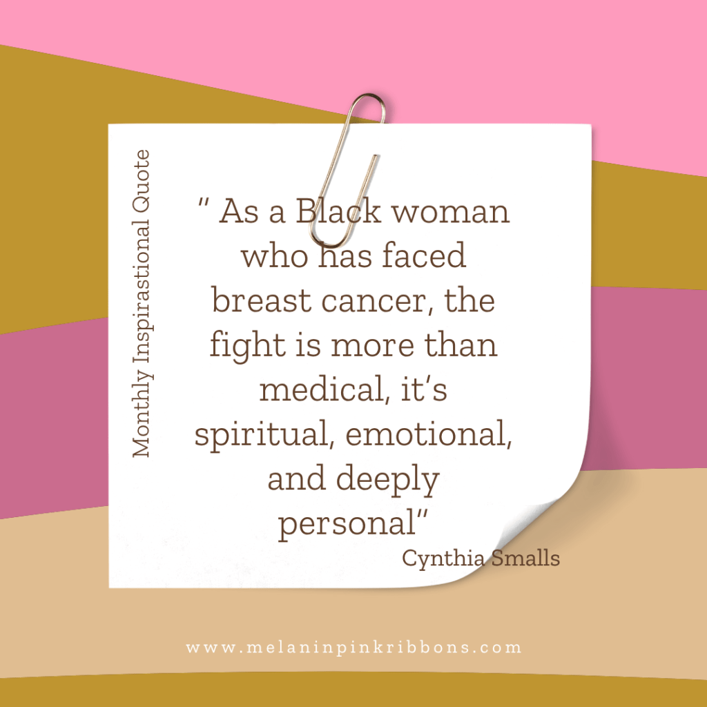 Welcome to Melanin & Pink Ribbons: A Blog for Black Women Fighting and Surviving Breast Cancer. It was born out of my personal journey as a patient not seeing very many images of women who looked like me fighting this disease. So, when I became a survivor, I did something about it. This is a space to learn and become empowered with information so we as a community can thrive into survivorship.