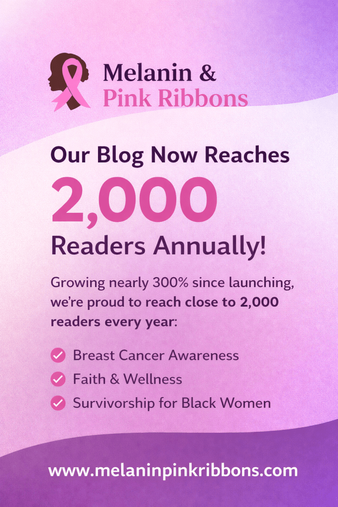 Melanin & Pink Ribbons is a purpose-driven blog launched in 2021, focused on breast cancer awareness, survivorship, faith, and wellness for Black women and their families. Since launch, the platform has grown nearly 300% in views and almost 500% in visitors, now reaching close to 2,000 readers annually. The blog blends education, lived experience, and encouragement, creating trusted content that informs, supports, and empowers an engaged, returning audience