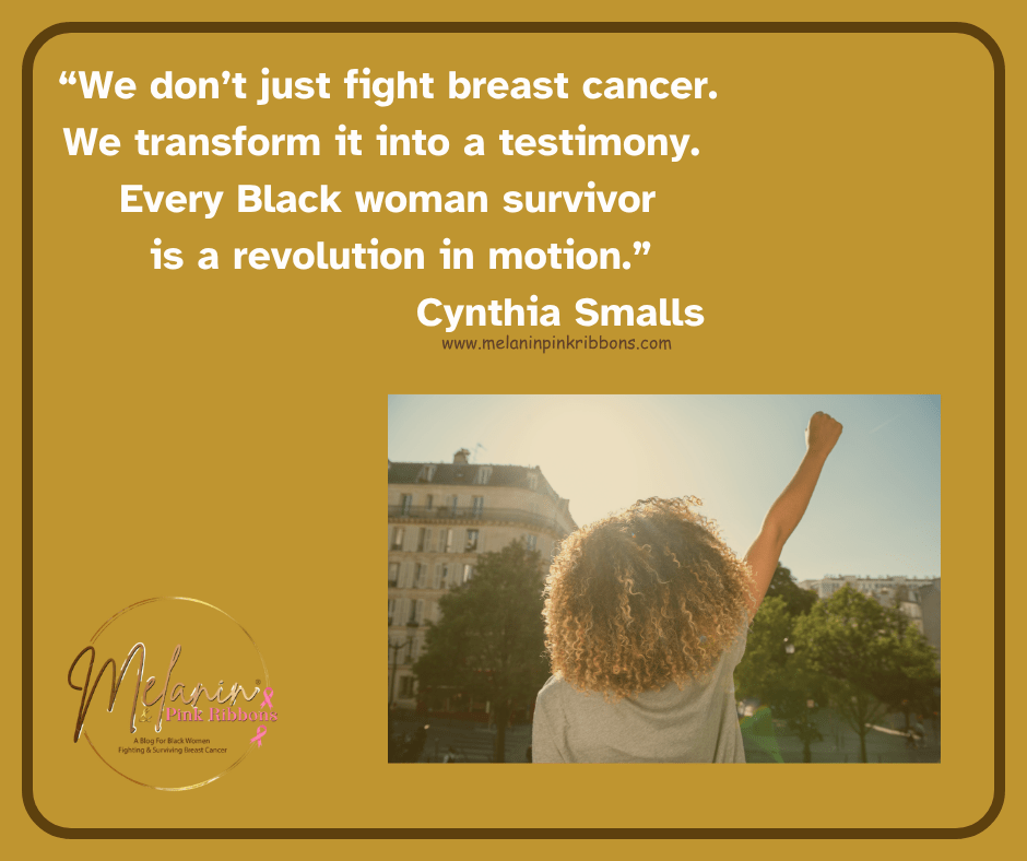 Welcome to Melanin & Pink Ribbons: A Blog for Black Women Fighting and Surviving Breast Cancer. It was born out of my personal journey as a patient not seeing very many images of women who looked like me fighting this disease. So, when I became a survivor, I did something about it. This is a space to learn and become empowered with information so we as a community can thrive into survivorship.